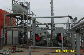 供热系统的辅机由膨胀槽、贮油槽、热油循环泵、注油泵、油过滤器、油气分离器等组成。